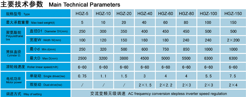 根據(jù)工件直徑大小自動調(diào)節(jié)滾輪組的擺角,無須人工調(diào)節(jié)。聚氨酯滾輪,承載能力大,驅(qū)動能力強。根據(jù)驅(qū)動方式可分為單驅(qū)動、雙驅(qū)動兩種形式。